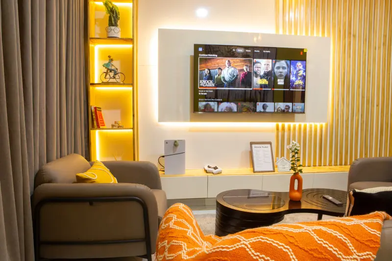 Our 2-bedroom getaway is perfect for couples, friends, families, tourists, and remote workers. Located in a quiet, secure estate at Aare Bodija, just 2–5 mins from key spots in Ibadan. 🎥 Private Cinema 🌅 Outdoor dining area 🔌 24/7 power supply 🛡️ 24/7 security in a gated estate 🚀 Super-Fast Wi-Fi ❄️ AC in all rooms and living areas 🛏️ Plush Bedding 🎮 PS5 Console 📺 Smart TV in the living room 🍳 Fully Equipped Kitchen 🧼 Washing machine, iron & ironing board 🚗 Free parking space