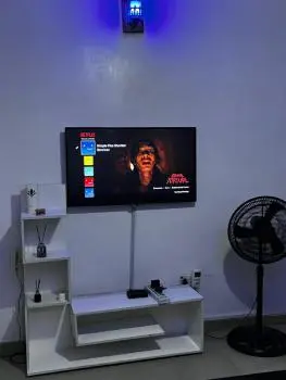 The space features a stylish living area, a comfortable bedroom, a modern bathroom, and a well-equipped kitchen. Ideal for business travelers, couples, or small families seeking a peaceful and homely stay.