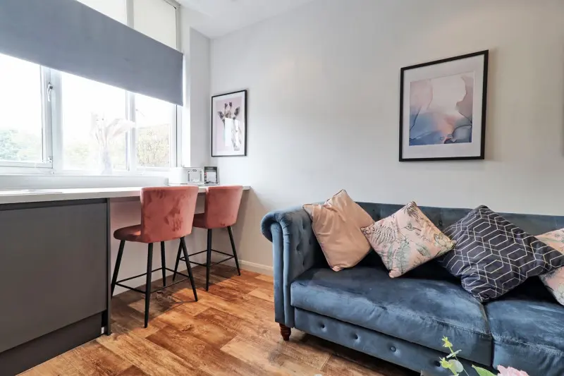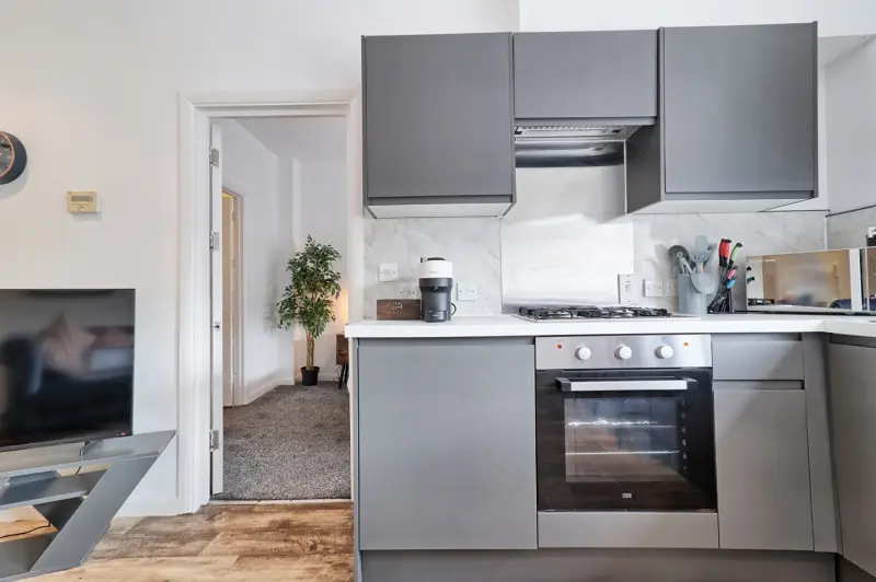 1 Bed Flat, 1 bedrooms 1 bathrooms 4 tenants max. Southend-On-Sea Key Features: Fully Furnished: 1 self-contained bedroom, with a double bed - 1 a sofa bed (not self-contained /living areas) - 1 kitchen with breakfast bar - 1 bathroom Fully equipped kitchen (plates, cutlery, oven, hob, etc.)Includes kitchen items, Modern Amenities: