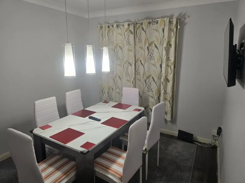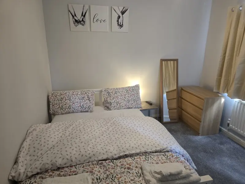 Enjoy a comfortable stay in this spacious 4-bedroom house on Jacinth Drive, Sittingbourne. With 3 modern bathrooms, double beds across four cozy bedrooms, and ample living space for up to 8 guests, this home is ideal for families or groups. The property offers a private garden, well-equipped kitchen, and a bright, welcoming living area. Located in a peaceful neighborhood with easy access to public transport, local shops, and Sittingbourne’s heritage museums and green spaces, it's a perfect base for exploring Kent or enjoying a relaxing getaway.